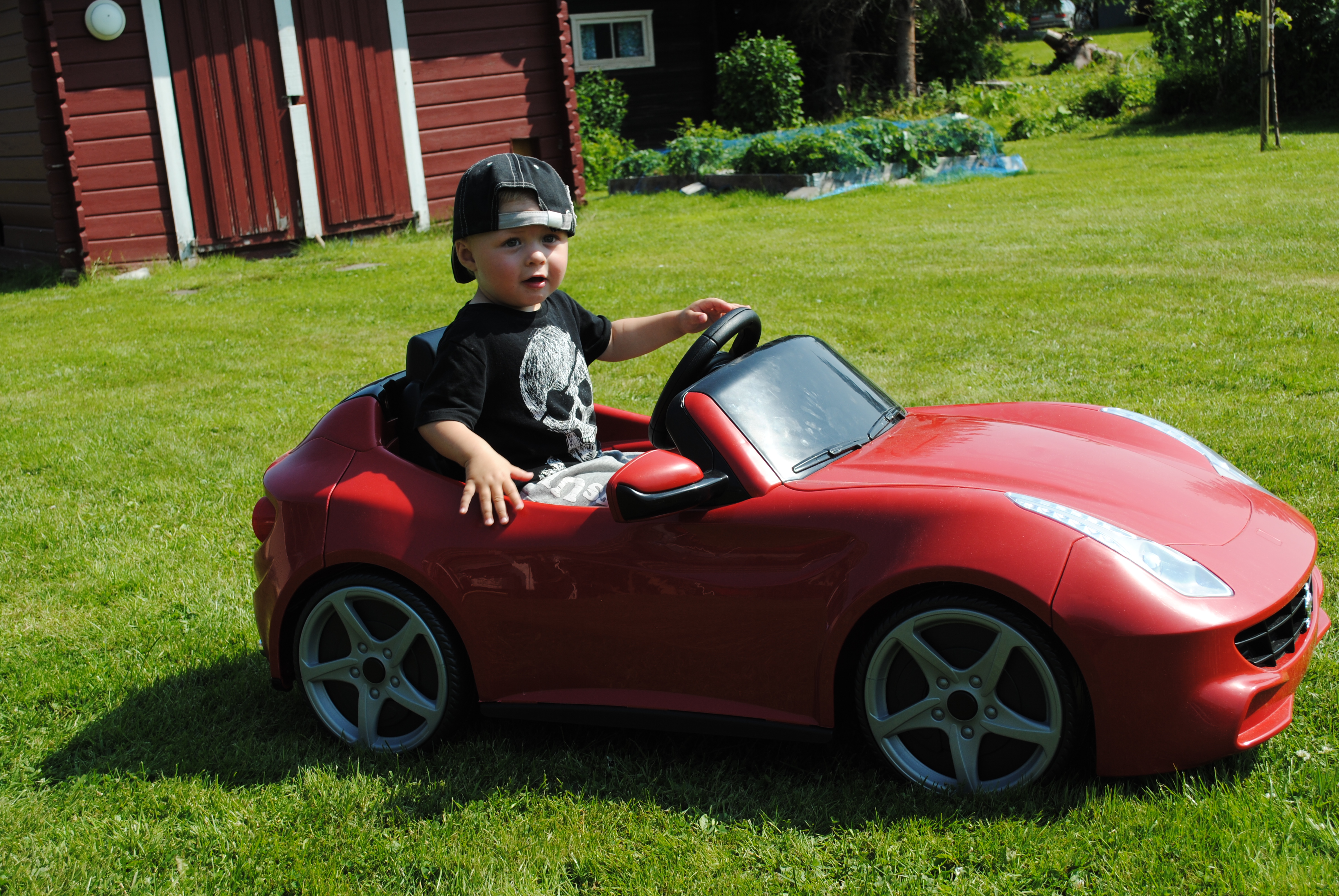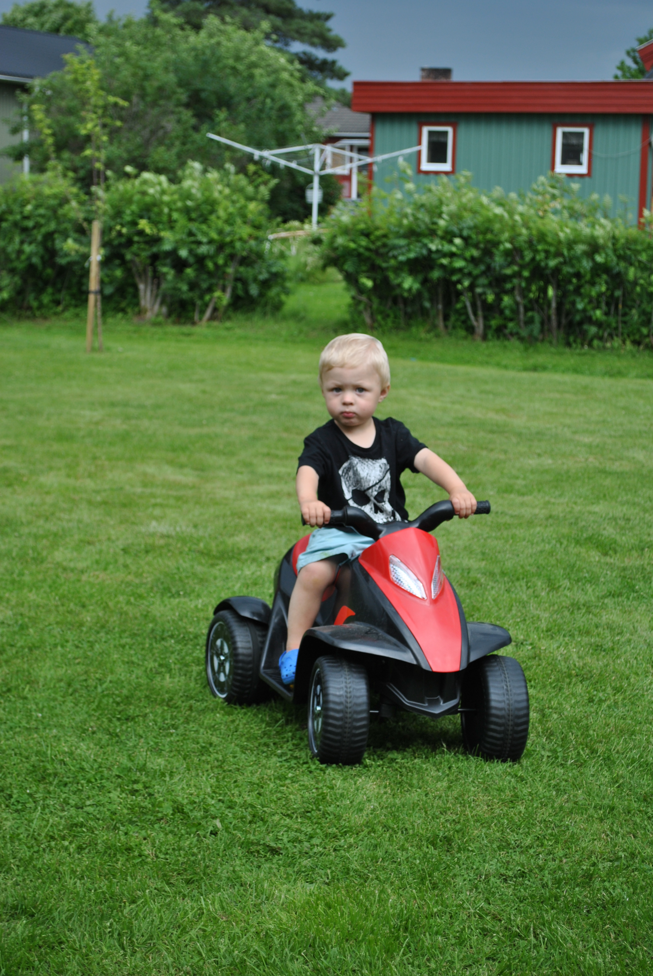Idag så hade de varit strålande väder så vi började dagen med att duka upp frukosten ute på altanen, så mysigt! Sen tog vi ut Neos Ferrari och 4 hjuling som han fick köra omkring med tills det var dags för att vila efter lunch. Jag och Jonas skulle bara lägga oss brevid han bara för att få lite Neo mys men hela familjen somnade och vaknade strax före 15, Då vi skulle vara och fira Jonas mormor som fyller 75 år. Så det vart bara att kasta oss i bilen och köra till stan för att hinna träffa hon. Och tyvärr så var hon febrig just denna dag och inte så pigg.